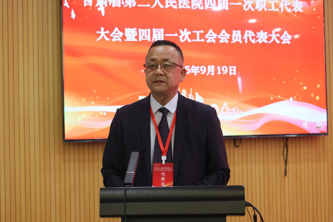 2025年9月19日,甘肃第二人民医院四届一次职工代表大会暨四届一次工会会员代表大会在医院门诊五楼学术报告厅隆重启幕。会议在庄严的国歌声中拉开帷幕,甘肃省教科文卫工会副主席、经费审查委员会主任李红艳莅临指导并作讲话,党委书记郑晓锋主持会议,副院长魏洪涛致开幕辞,医院领导班子全体成员、150余名代表齐聚一堂,共商医院发展大计,谋划高质量发展新蓝图。