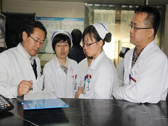 2013年3月4日-10日,是省二院院长米登海值周。3月7日、8日下午,院长米登海带领行政办公室、医务科、护理部、后管中心、保卫科、爱卫办、中医科、宣传科等部门负责人对全院进行了行政查房,重点检查了机关人员在岗情况和内、外科中医综合治疗室中医适宜技术开展情况。
